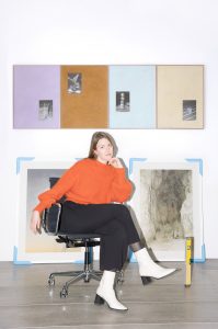 La broderie qu’elle réalise ensuite va donner ses couleurs au tableau. Les fils, toujours appliqués à l’horizontale, se transforment en un voile doux qui offre à l’œuvre une surface supplémentaire et une vibration continue comme le son des cordes sympathiques d’une harpe. Cette superposition suave confère à ses réalisations une intense profondeur spatiale et temporelle.